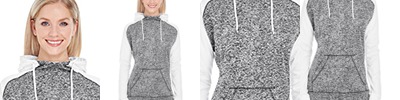 7 oz., 100% spun polyester fleck fleece; Contrast zipper and front pouch pocket; Thumbholes on cuffs;