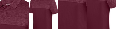4.3 oz., 100% polyester heathered wicking knit top body, collar and sleeves; 3.3 oz., 100% polyester wicking knit solid body; Wicks moisture away from the body ; Tagless label; Contrast self-fabric collar, placket, and yoke; Contrast set-in sleeves ; Box-stitched placket ; Three matching buttons with cross-stitching;