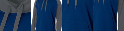 8.3 oz., 80% ringspun cotton, 20% polyester midweight fabric; Soft cotton faced fabric creates ideal printing surface; Twin needle stitching detailing; Contrast raglan sleeves; Double fabric hood; Contrast flat lace drawcords; Small hidden opening for earphone cord feed inside pouch pouch pocket; Hidden earphone loops inside collar; Ribbed cuff and hem; Simple tear-away label makes it perfect for rebranding;