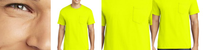 - 50/50 cotton/poly (Graphite Heather, Safety Green)