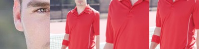 5 oz./yd2 / 172 gsm, 100% polyester face plaited to 60% polyester, 40% cotton back (total overall garment 61% polyester, 39% cotton); Proprietary dual-sided mesh pique knit constructed of fine denier wicking polyester on the outside and soft-as-cotton wicking blend on the inside; Moisture-wicking performance with UV 15-39 protection; Three-button placket; Dyed-to-match buttons; Matching flat-knit collar with contrast double tipping; Hi-low hemline; Side vents; Active fit; Easy care;