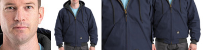 9 oz., 100% polyester fleece; 5 oz., thermal lining; Nylon front zipper; Reinforced bartacks at stress points; Double-layered three-piece hood; Double-needle stitched main seams; Oversized front pockets;