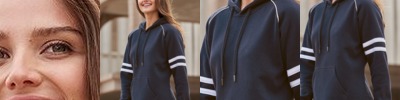• Jersey lined hood with sewn eyelets and matching drawcord