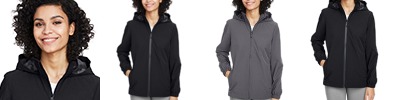 * Micron(tm) polyester is a lightweight, wind/water-resistant fabric * 100% polyester micromesh lining * Embossed inserts for subtle textured pattern * Woven label * Front zipper * 3-piece hood with spandex binding * Set-in sleeves * Front zippered pockets * Elastic cuffs * Adjustable bottom hem with hidden shockcord closure in right pocket (on Adult)