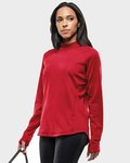 4.5 oz., 60% combed ringspun cotton/40% polyester fine jersey; fit: ladies' modern - semi-fitted; taped shoulder-to-shoulder; Easytear™ label; braided cotton flat drawcord; coverstitched sleeve cuffs with self-fabric extended cuff; double-needle sleeves and hemmed bottom; drop tail with side vent construction; sideseam construction;