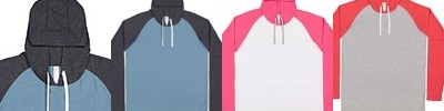 4.5 oz., 60% combed ringspun cotton/40% polyester fine jersey ; fit: adult unisex - true to size; contrast three-piece hood construction; contrast cotton-hand flat braided drawcord; contrast raglan long-sleeve; Easytear™ label; sideseam construction; double-needle hemmed sleeves and bottom; drop tail with side vent construction;