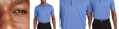 A subtle pique and jersey self-jacquard horizontal texture makes this polo stylish and work-friendly. Exceptional moisture wicking makes it comfortable.