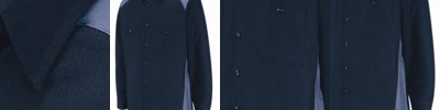 - Solid black trim on collar, cuffs and chest pocket